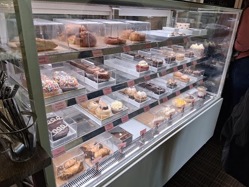 As soon as we walked inside, we were pleasantly surprised by how spacious the bakery felt. The interior was bright, clean, and welcoming, decorated in soft colors that made the space feel calm and inviting. The pastry case immediately drew attention, with baked goods beautifully displayed and hard to resist. The staff was friendly and patient with our large group, answering questions and helping us navigate the menu. A particularly charming feature was the free library and puzzle exchange in the corner, offering books and puzzles for all ages. Free WiFi is also available, making this a comfortable place to linger, meet, or get some work done.