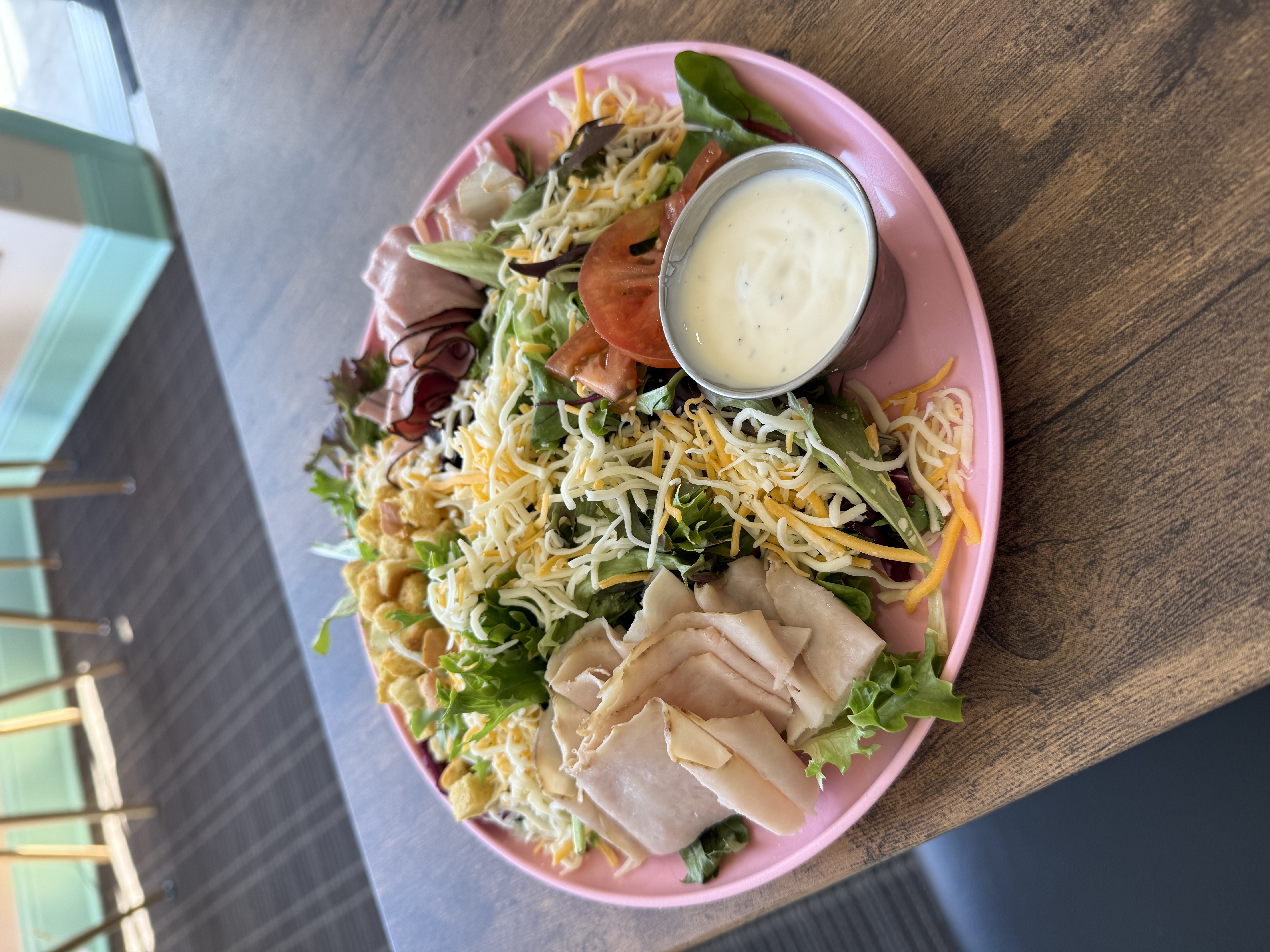 One reviewer opted for the Chef’s Salad and Chocolate Peanut Butter Dream cupcake. The salad had a simple presentation but used fresh, quality ingredients, making it a healthy and satisfying option. The cupcake leaned more indulgent, with a mild chocolate cake base elevated by rich peanut butter cream and candy toppings. While the cake itself was subtle in flavor, the frosting and toppings carried the dessert.