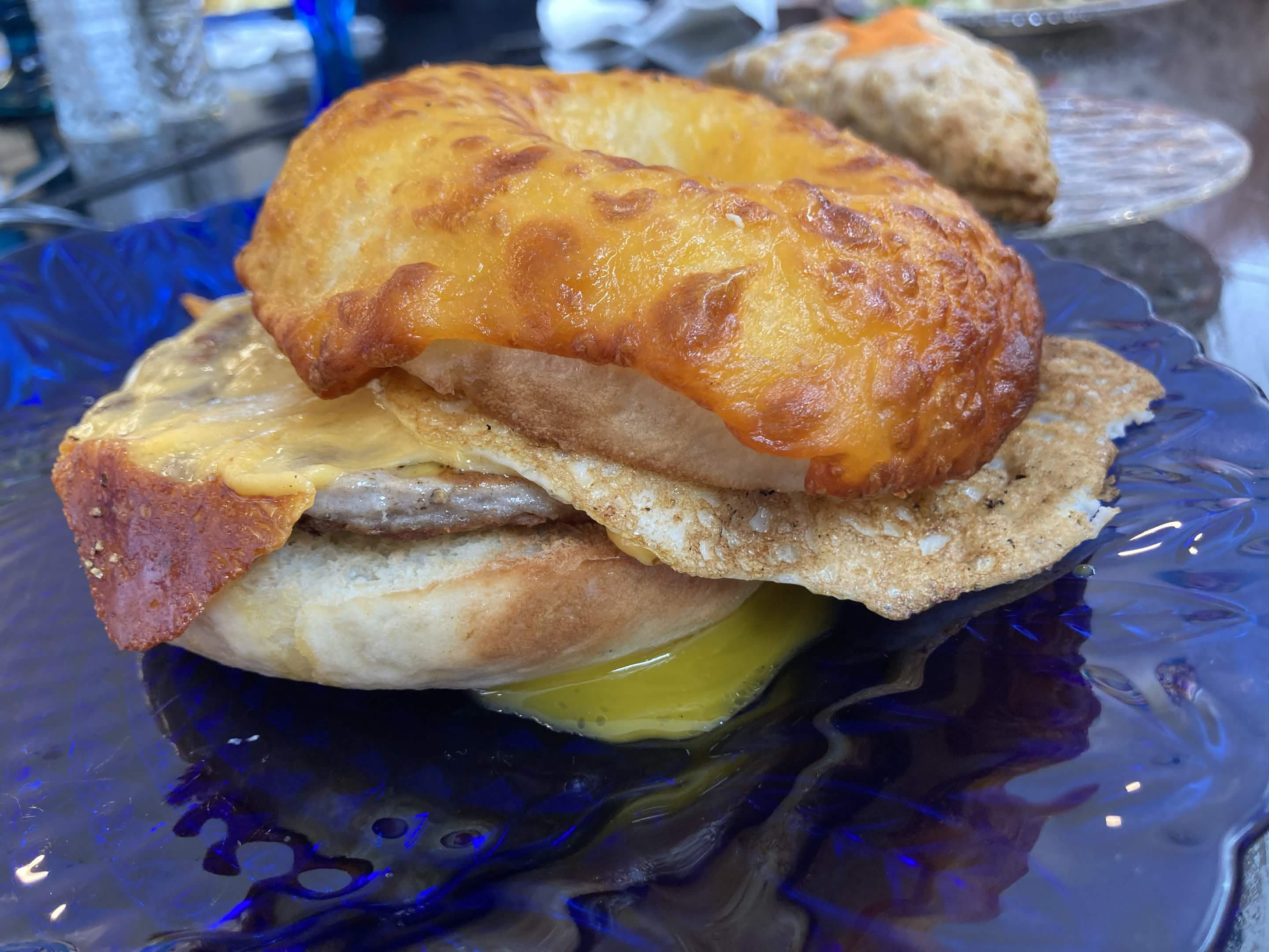 Our final reviewer joined the group as a self described non seafood eater, but still found something enjoyable on the menu. They ordered a breakfast bagel and a carrot cake scone. The bagel was cheesy and satisfying with a perfectly cooked egg and flavorful sausage. The carrot cake scone made for a sweet finish to the meal.